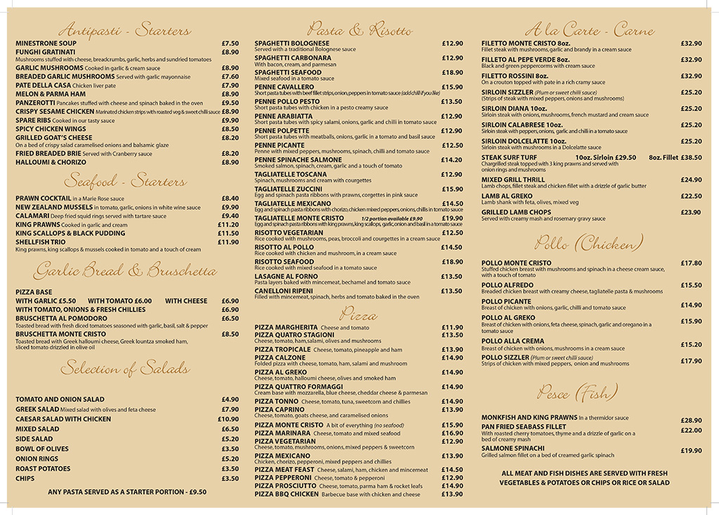 All food is produced freshly on our premises by real Italian Chefs who know how to cook in a classic or home-made style.  Taste pasta how it is supposed to be cooked or pizza that has that genuine traditional Mediterranean taste.
