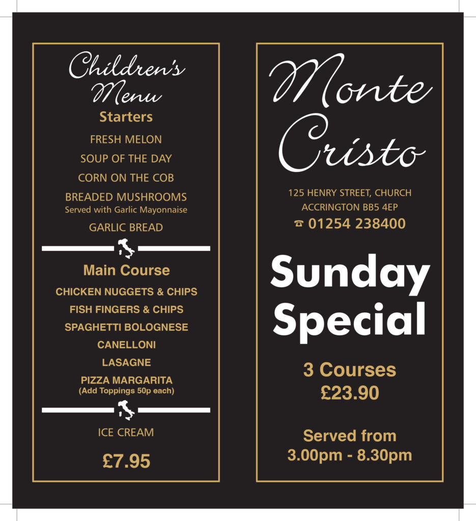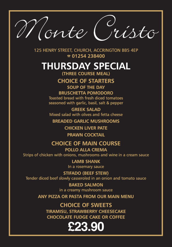 With four special offer menus to choose from, Monte Cristo try to give all diners a chance to eat fine Italian cuisine at affordable rates!